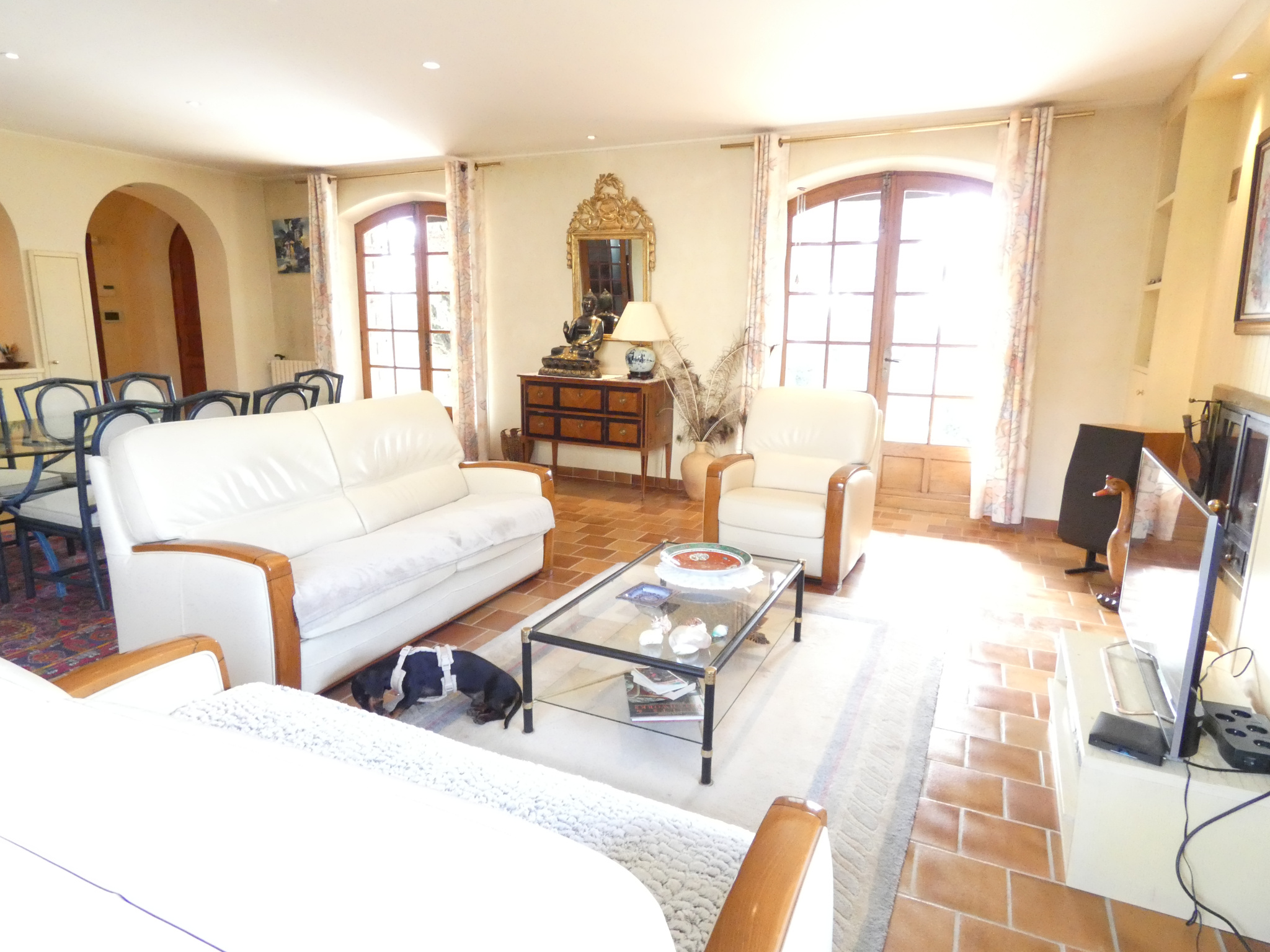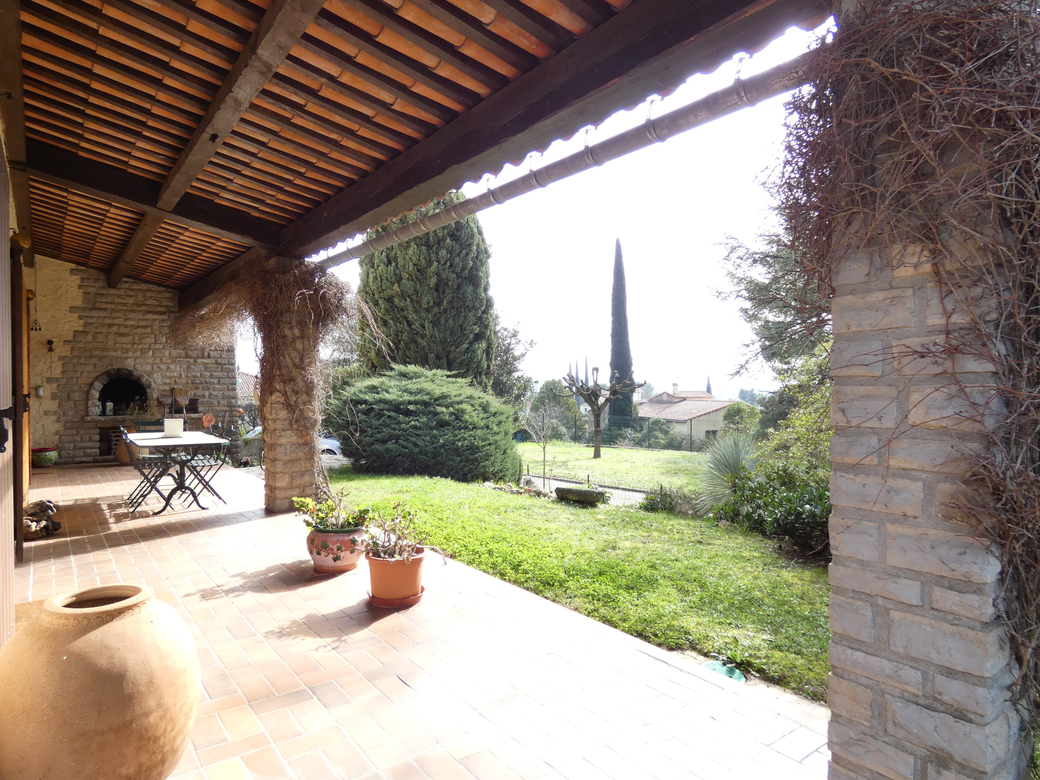 Dans un quartier résidentiel au calme , à deux pas du centre ville, vous disposez d'un parc arboré intimiste avec terrasse couverte, jardin arboré, piscine et plage, portail et clotures.